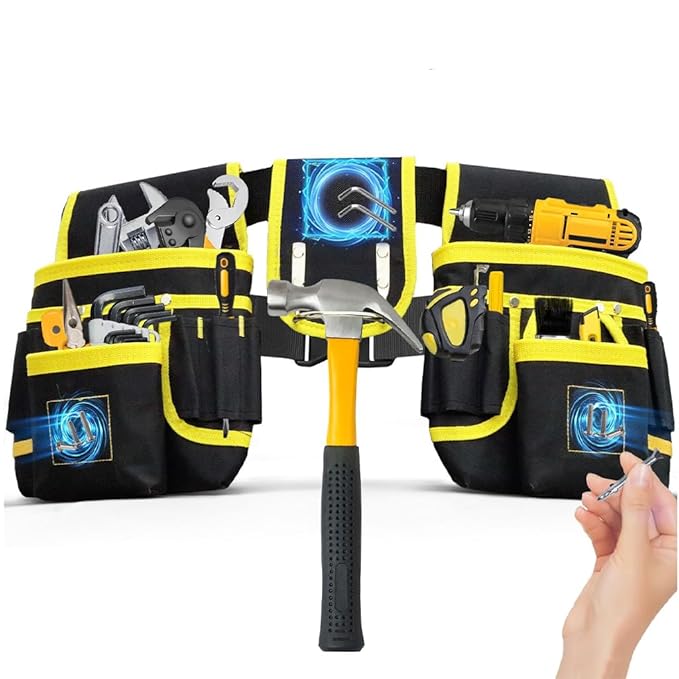 - BUILT-IN MAGNET FOR HANDY ACCESSIBILITY: The center part of the belt includes a powerful built-in magnet stone, perfect for temporarily holding nails, screws, or other small magnetic accessories. This thoughtful addition allows you to quickly grab the items you need without searching through your pockets.